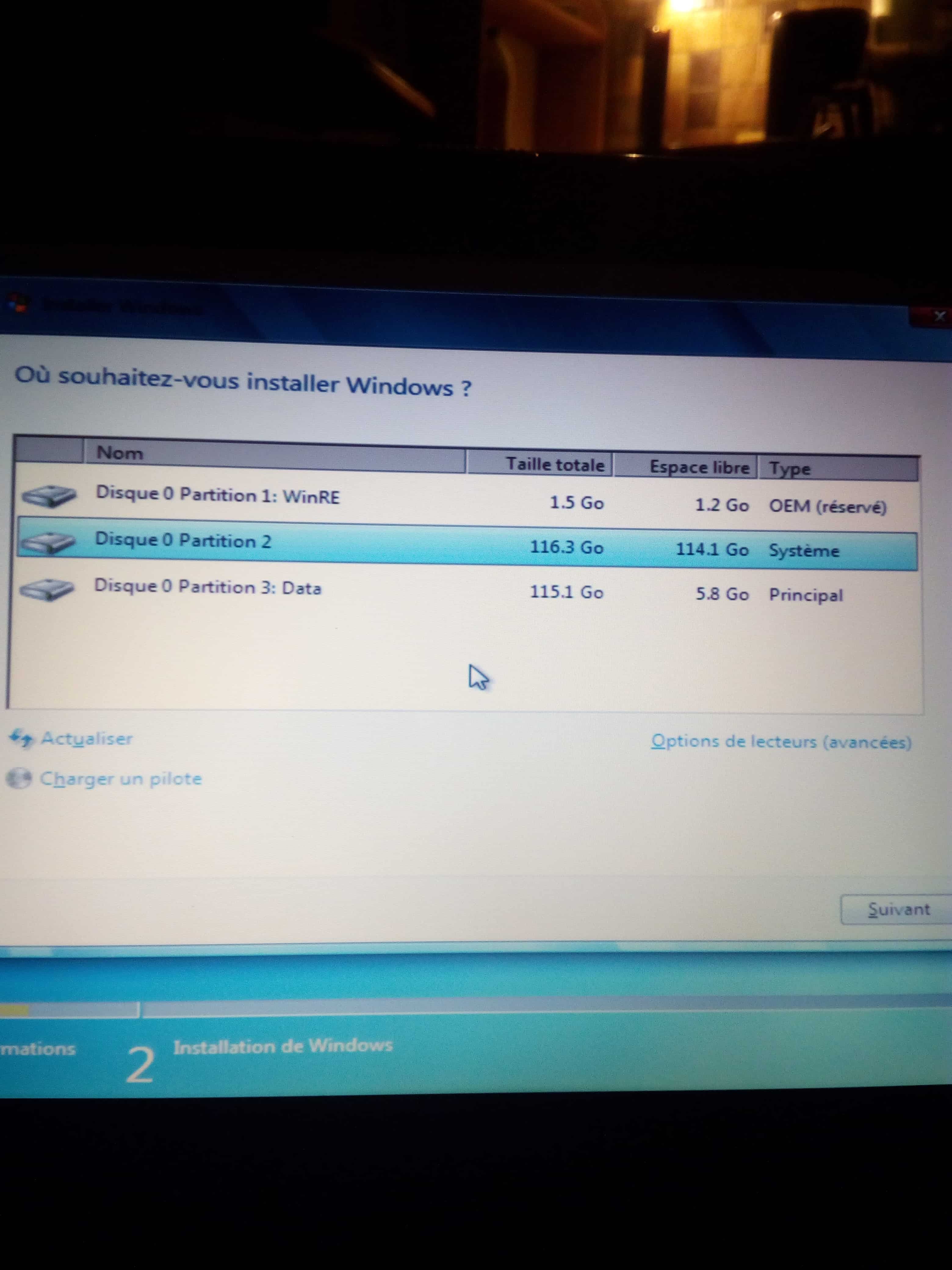 Je démarre l'install de Win7-PRO NL (néerlandais), et je sélectionne la partition du Win7/FR