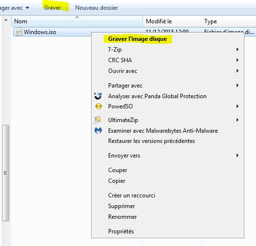 Alors soit tu fais clic droit (pas clic tout seul) et tu as "chercher l'emplacement du fichier", soit tu as "graver l'iso", exemple sur Windows 10, c'est identique (j’ai fermé Windows 7, je dois partir).